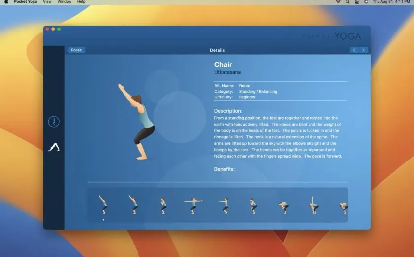 所有瑜伽动作配有专业制作的高清动画,细节精准,流畅自然,用户可以通过大屏 Mac 设备清楚了解每一步姿势。 -