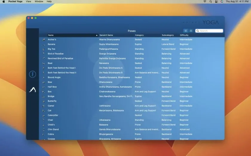 Pocket Yoga 口袋瑜伽 Mac 版是一款兼具专业性与易用性的健康管理应用,为瑜伽爱好者提供了高质量的家庭锻炼解决方案。其精美动画、清晰语音指导与详细课程结构,构建出完整的瑜伽训练体系。Mac 系统的高清显示和流畅运行提升了每次练习的沉浸感和舒适度。无论是初学入门还是进阶修炼,Pocket Yoga 都能成为用户日常放松与提升身体素质的得力助手,是值得长期使用的健康生活工具。
