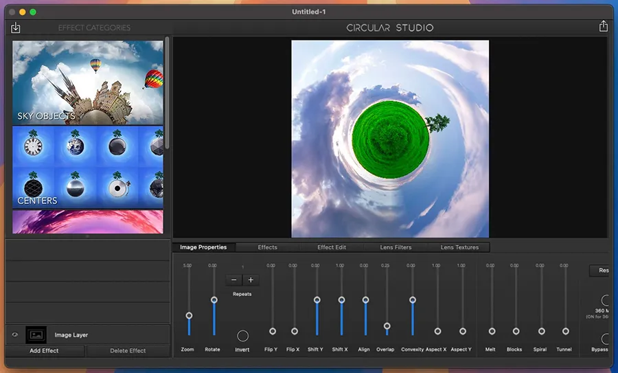 Circular Studio(中文可译为“小行星图像编辑器”或简称 Circular Studio)是一款专为 macOS 用户设计的趣味与创意图像处理工具,它的核心定位是将普通照片转化成“环形世界”(tiny planet)风格图像。你可以把风景、360°全景照片或者普通照片,通过 Circular Studio 进行扭曲、旋转、重复环绕等处理,制造出极具视觉冲击力的圆形效果图。相比一般的图片编辑器,这类风格的效果执行更简单、更直观,非常适合摄影爱好者、社交媒体内容创作者或喜欢玩视觉特效的普通用户尝试。