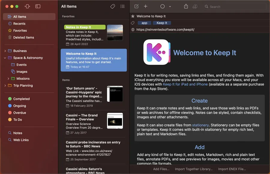 无缝的跨设备同步:通过与 iCloud 的无缝同步,Keep It 使用户能够在不同设备之间保持一致的资料库。无论在家中使用 Mac,还是在外使用 iPhone 或 iPad,用户都可以轻松访问和更新自己的资料。