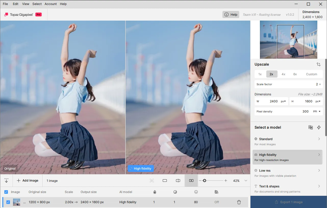 在 Win 上使用 Topaz Gigapixel Pro 的过程中,最直观的感受是它的智能与便捷。软件界面简洁直观,拖拽图片即可开始处理。放大预览效果即时呈现,用户可以清晰对比处理前后的差异。AI 算法在优化边缘细节和减少噪点方面表现突出,无论是老照片修复、作品打印,还是电商图片优化,都能得到令人满意的结果。Topaz Gigapixel Pro 处理过程中提供实时预览,极大提升工作效率和输出质量。即使是非专业用户,也能轻松上手并获得专业级效果。