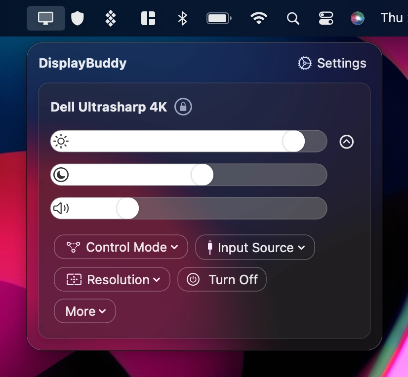 - 亮度和对比度调整:通过 DisplayBuddy,用户可以轻松调整外接显示器的亮度和对比度,而不需要物理调节按钮。
