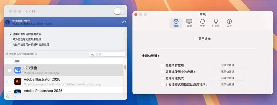 Hides v7.2.0 中文激活版 Mac应用程序隐藏效率提升工具