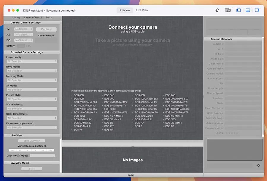 DSLR Assistant for Mac(中文常称“单反助手”)是一款专为数码单反相机用户打造的远程拍摄与相机控制软件。它支持将相机与 Mac 电脑连接,通过软件直接操控拍摄过程,包括快门释放、曝光设置、实时取景和照片传输等。无论是专业摄影师还是摄影爱好者,DSLR Assistant 都能大幅提升拍摄效率与便利性,让复杂的拍摄流程在 Mac 上变得直观可控。