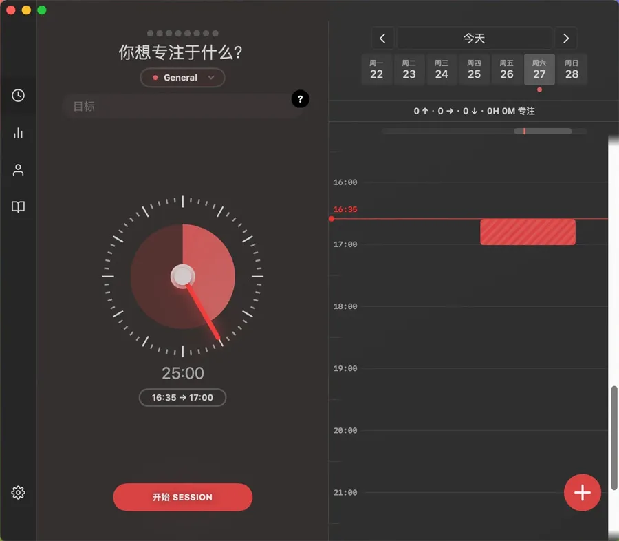 受番茄工作法的启发,Session可以帮助你集中注意力。25分钟或45分钟是你离目标更近的时间 - 屏蔽那些让你分心的网站和应用程序,集中注意力(仅限mac)