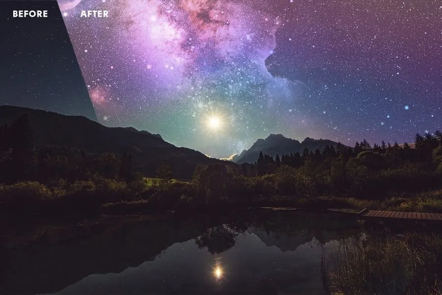 10张高质量夜空星空银河星河叠加图片素材+PS动作 Starry Sky Overlays Pack