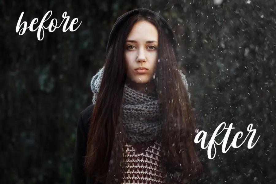 广泛适合业余爱好者和专业人士。在彩色和黑白照片上效果极佳。为了方便起见,在“滤色”模式下添加了用于选择和覆盖叠加层的操作。这将在Photoshop和Photoshop Elements中均起作用。雪花和灰尘效果叠加层可以在任何图形编辑软件中使用,该效果在“屏幕/滤色”模式下支持图层叠加。