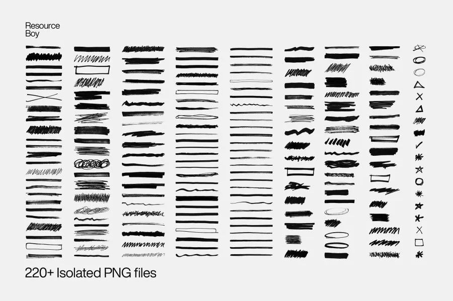 224张手工毛笔笔触涂鸦绘画创意设计PNG图片素材 200+ Redaction Textures