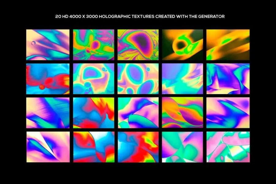 20款高清彩色全息渐变预制贴图纹理PS样式模板渐变素材 Holographix Texture Generator