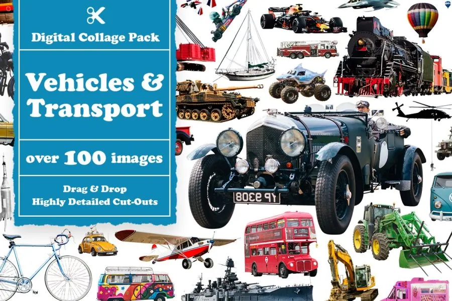 1000+鲜花树木植物食品饮料动物人类风景车辆复古背景剪贴画报PNG拼贴素材 Ultimate Collage Creator 1000+