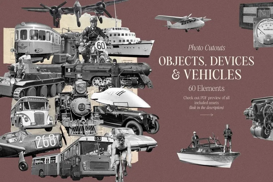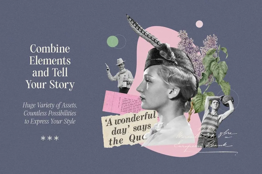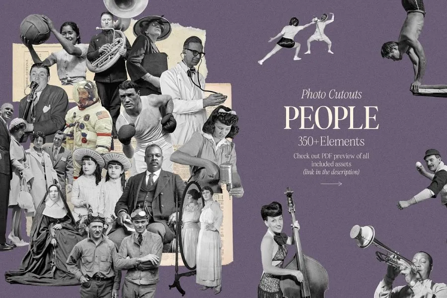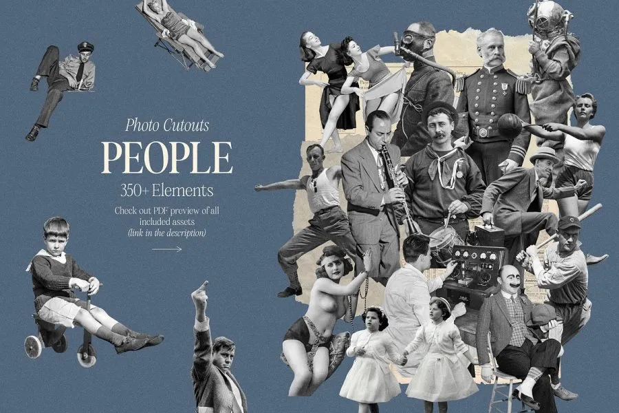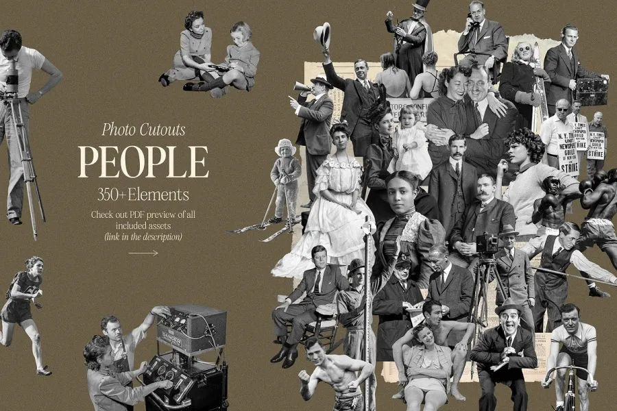1200+复古旧照片报纸期刊杂志插画艺术剪纸创意组合拼贴画报设计PNG图片素材 1200+ Vintage Collage Creator Vol. 2