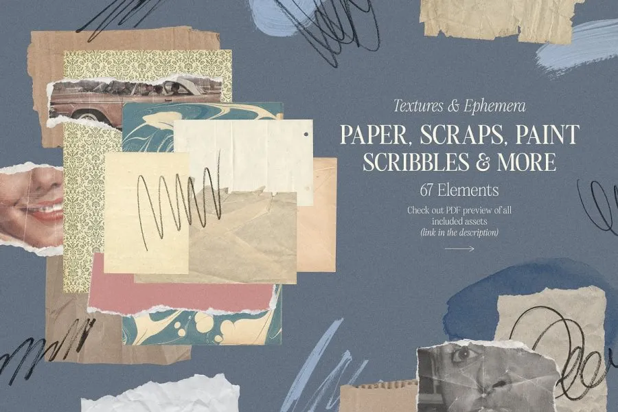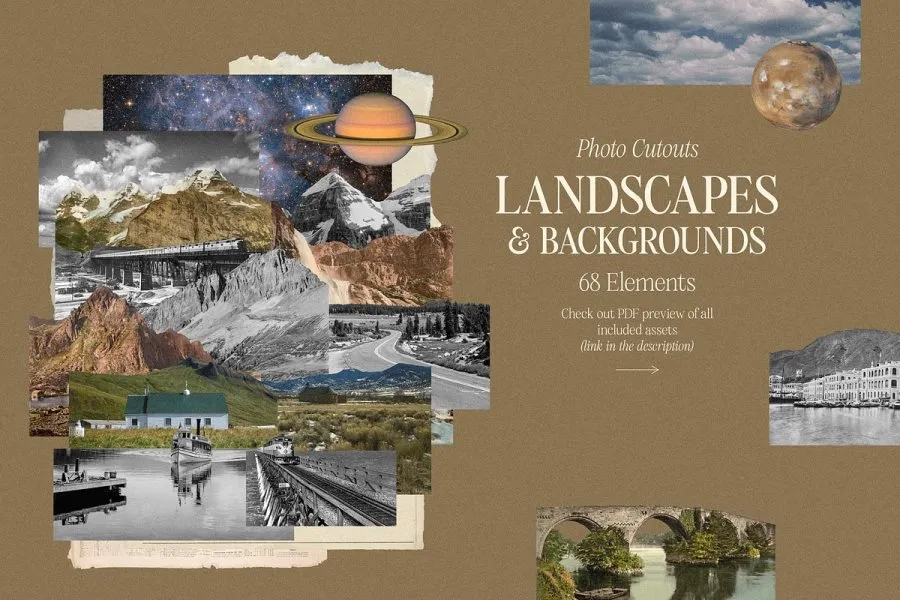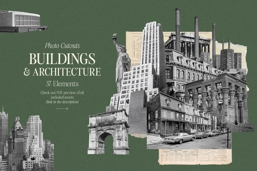 在几分钟内轻松创建出色的拼贴画。只需从包含的 1200 多个资源中拖放您选择的元素即可。为您的创造力提供无限的组合和可能性。这是我们发布的第二卷。Vintage Collage Creator Vol. 2是比其前身更好、更大、更通用的集合。这个巨大的包包含 1200 多个元素,这些元素源自各种旧照片、插图、艺术、蜉蝣和纹理,是每个热爱复古美学的数字拼贴制作者的终极武器库。作为奖励,您将获得 25 幅预制拼贴艺术品来激发您的灵感并帮助您入门。
