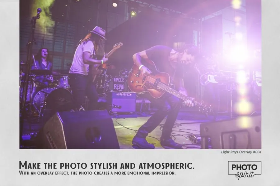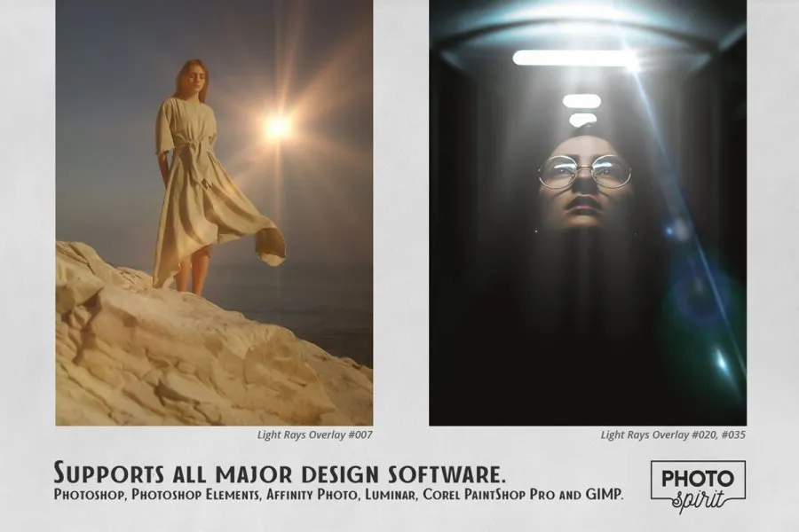 适合业余爱好者和专业人士。彩色和黑白照片上的效果极佳。为了方便起见,添加了在屏幕模式下选择和叠加叠加的操作。这在 Photoshop 和 Photoshop Elements 中均有效。光线效果叠加可用于任何支持屏幕模式下的图层叠加的图形编辑器。