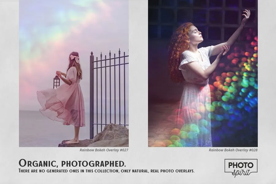 50 种彩虹散景效果叠加的华丽集合,确保您的照片获得新的魅力、艺术性和情感性。
