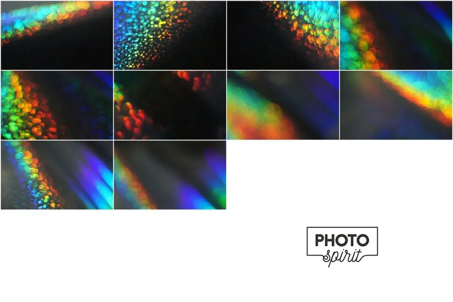 适合业余爱好者和专业人士。彩色和黑白照片上的效果极佳。为了方便起见,添加了在屏幕模式下选择和叠加叠加的操作。这在 Photoshop 和 Photoshop Elements 中均有效。彩虹散景效果叠加可用于任何支持屏幕模式下图层叠加的图形编辑器。