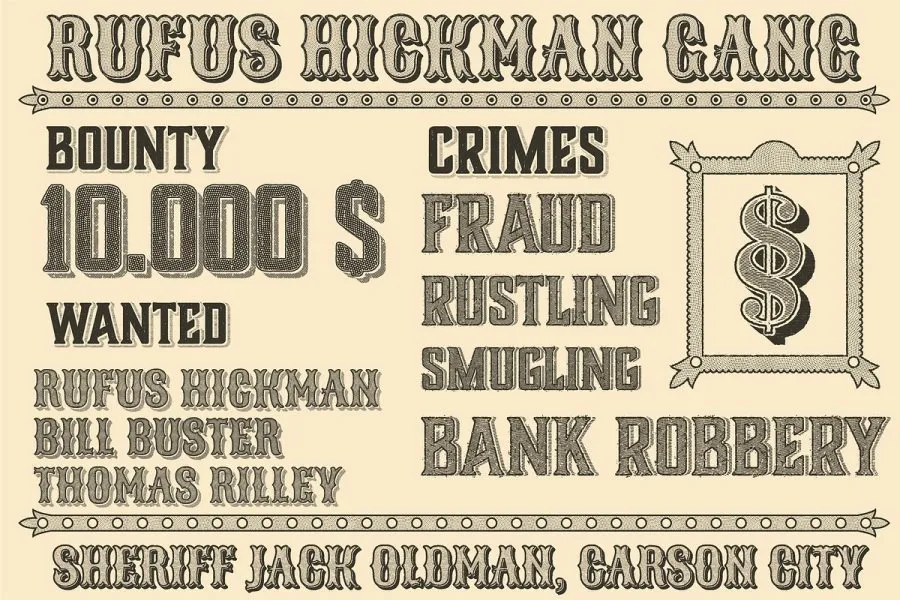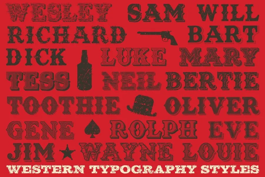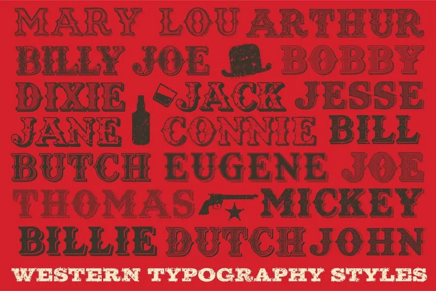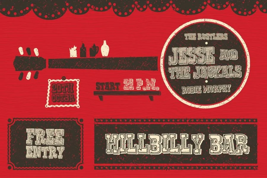 立即获得 38 种复古字体效果,感受狂野西部的感觉!……还有更多!该产品需要与 Adobe Illustrator 配合使用