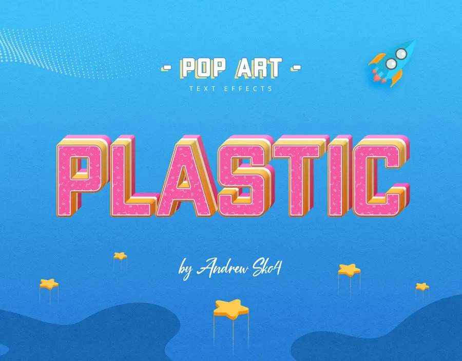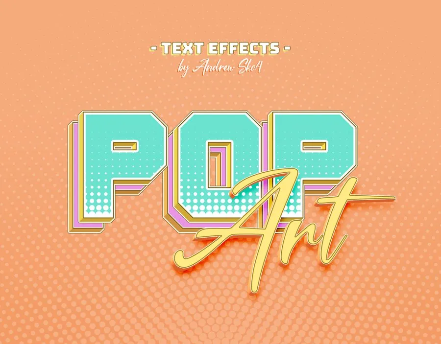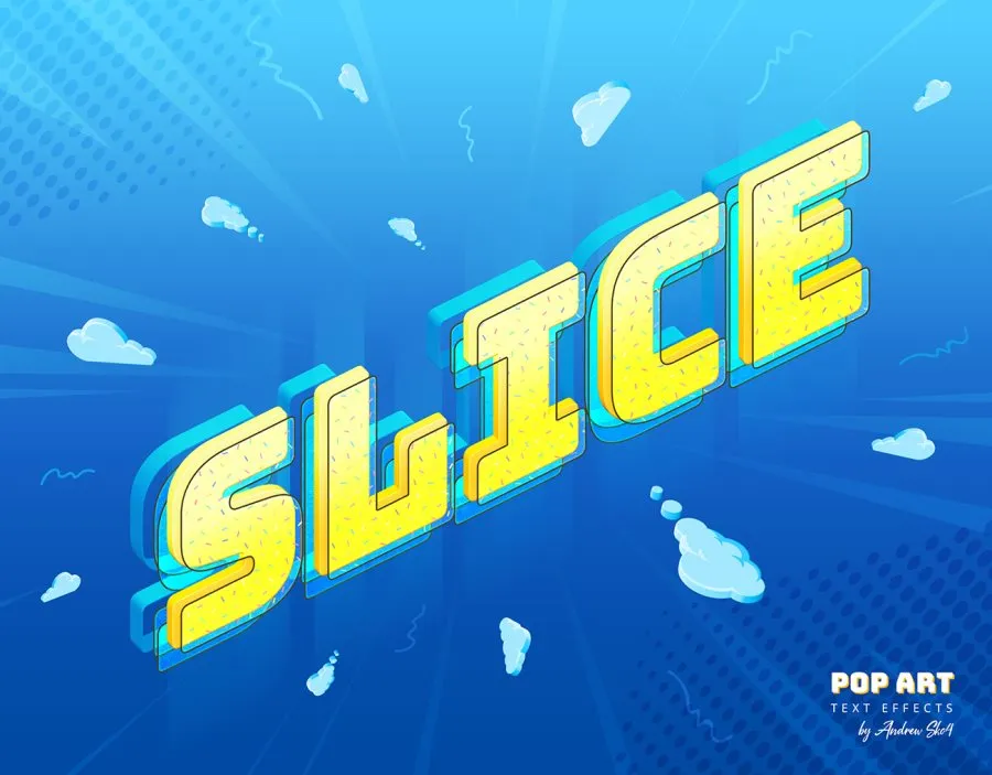 10 个超级简单的可编辑 PSD 模板。为您的文本、徽标、形状、像素层提供切片波普艺术效果。适用于任何类型的图层 – 矢量或光栅!只需几秒钟即可获得炫酷的字体风格。使用简单,您只需将文本放入智能对象中。