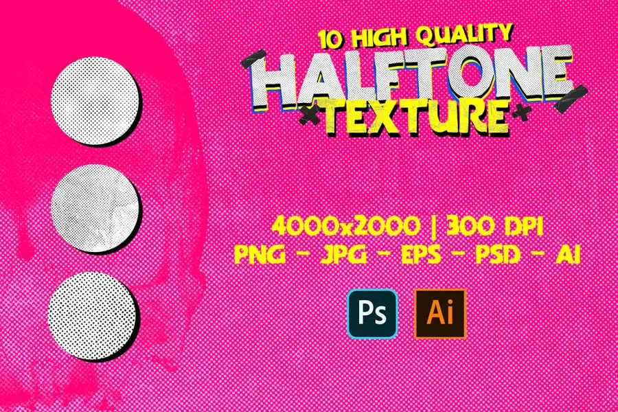 Halftone Texture 呈现一组独特的纹理模型,外观极具冲击力。此系列非常适合需要具有戏剧效果的抽象背景的项目。