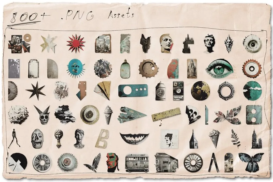 - 818 个鼓舞人心的 .PNG 拼贴剪切元素,确保您拥有完美适合您的创意项目。而多功能 2000x2000px 文件为您的各种设计应用提供了适应性。