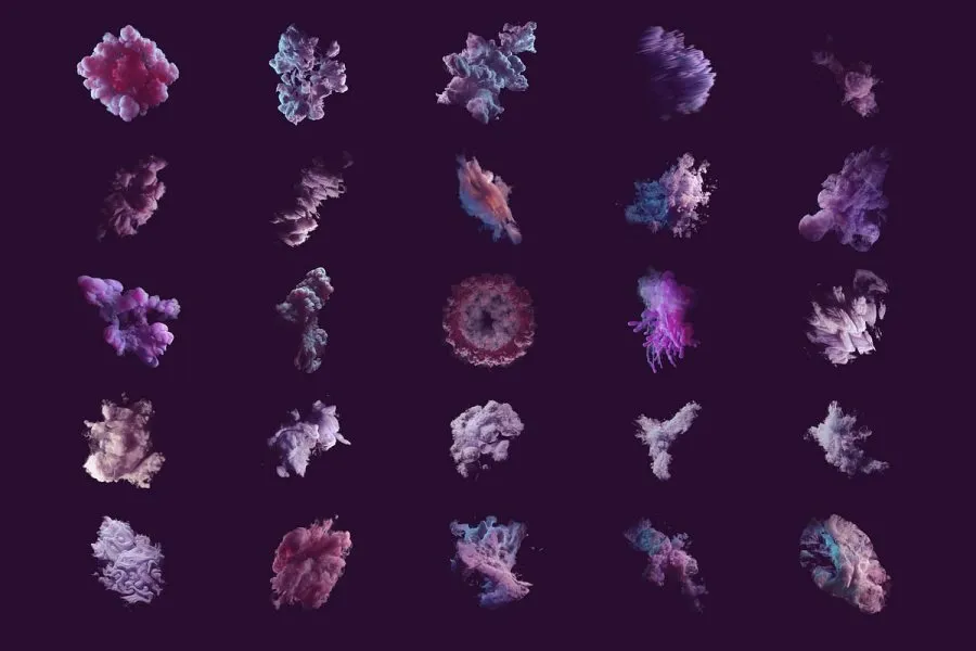 Volumetrics 是一组 25 个抽象的蒸汽结构。这些细长的、带有情绪光亮的星云非常适合作为背景填充和一般的图形氛围。