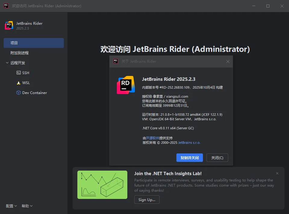 Rider(中文常称 跨平台 .NET 开发环境,简称 Rider)是 JetBrains 推出的一款强大的 IDE,专为 .NET 与跨平台应用开发而打造。它基于 IntelliJ 平台与 ReSharper 技术,集成了丰富的 C#、VB.NET、ASP.NET Core、Xamarin、Unity 等开发支持。是使用 Windows 进行 .NET 项目开发的首选解决方案。