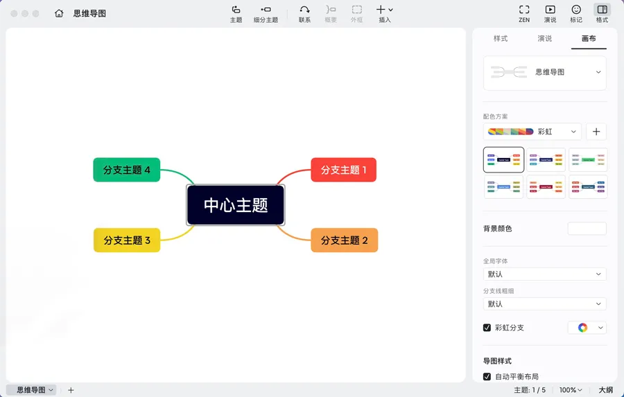 Pitch 模式幻灯片展示:将思维导图一键转换为演示幻灯片,自动布局与动画生成提升演示专业度。