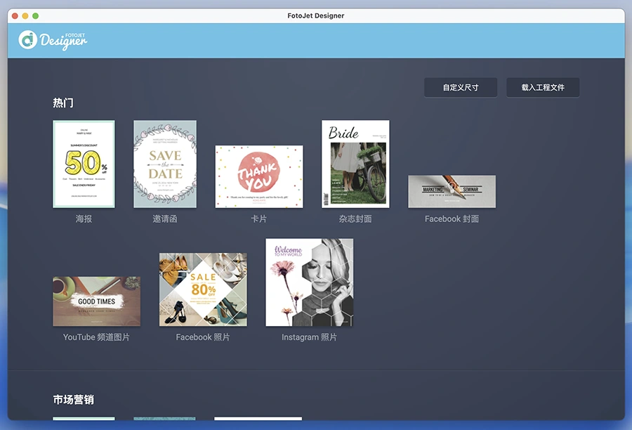 FotoJet Designer for Mac 是一款由 PearlMountain Technology 出品的图形设计工具,专为 macOS 用户打造。它面向非专业用户与设计初学者,也能满足想要快速制作社交媒体图像、海报、邀请函、卡片、横幅等设计作品的需求。软件提供大量模板、素材与编辑工具,使用户在几分钟内完成高质量设计,无需复杂的专业绘图技能。