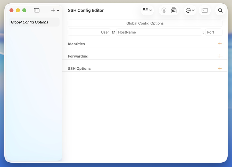 在Mac上使用 SSH Config Editor Pro,操作界面简洁明了,符合macOS的交互逻辑。用户无需记忆复杂的SSH语法,只需通过图形化面板选择目标主机、设置参数,即可自动生成标准化配置代码。对于习惯使用终端的用户,软件也支持双向同步,可直接编辑原始 .ssh/config 文件,并实时反映到图形界面中。支持Touch Bar操作与系统菜单栏快捷方式,为Mac用户提供更加本地化、便捷的使用体验。