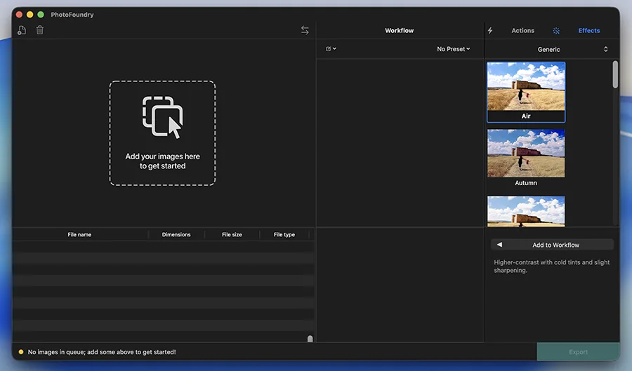 在 macOS 上使用 PhotoFoundry 的体验极为顺滑。软件启动速度快、界面布局清晰,所有主要工具均以侧边栏形式呈现,用户可以快速访问曝光、曲线、色彩、锐化等模块。实时预览功能让每一次调整都能立刻在图像中体现,支持原图与修改后并排对比,方便判断效果差异。对于使用 MacBook Pro 或 iMac 的用户,PhotoFoundry 能很好地发挥 Retina 屏幕的色彩优势,展现细腻的明暗层次。批量处理模式尤其实用,可一次性导入并统一修正多张照片,节省大量后期时间。整体操作体验自然直观,兼顾专业性能与易用性。