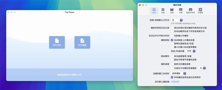 Fig Player 是一款专为Mac平台设计的本地媒体播放器,主打轻量、快速与广泛格式支持。它专注于简洁高效的视频播放体验,支持包括MP4、MKV、AVI、MOV、FLV等主流格式,能流畅运行4K视频资源,兼容字幕、多音轨、倍速播放等功能。Mac版Fig Player针对Apple芯片架构优化,在保证高画质呈现的同时占用系统资源极少,非常适合需要稳定播放高质量影片的macOS用户。