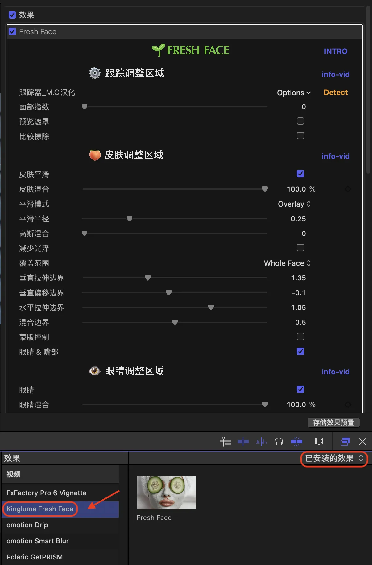 快速为人脸视频添加美颜效果。Fresh Face提供自然的皮肤平滑效果以及精确的眼睛和嘴巴水平调整,可用于近距离或中距离拍摄人脸。它结合了强大的皮肤平滑算法和由最新机器学习面部跟踪驱动的精确蒙版。