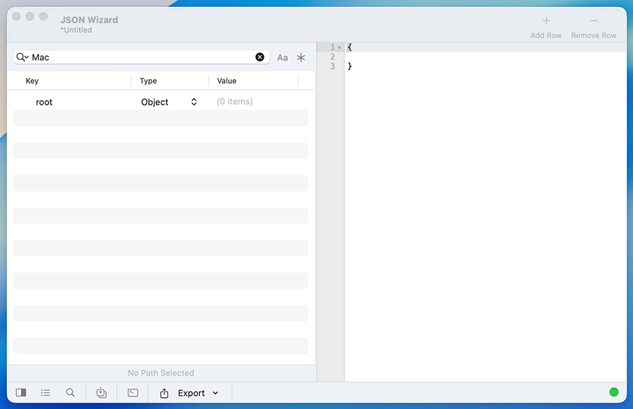 在 Mac 上使用 JSON Wizard,体验是直观且高效的:用户可在节点树视图下快速展开/折叠 JSON 结构,也可以切换到源代码视图直接编辑。输入错误时可以实时提示并高亮显示异常位置;导入各种数据格式(如 YAML、CSV 等)后能直接转化为 JSON 进行操作;搜索和“按路径访问节点”功能让你在复杂数据中快速定位目标;整体操作流程流畅、界面简洁,适合日常 JSON 管理。