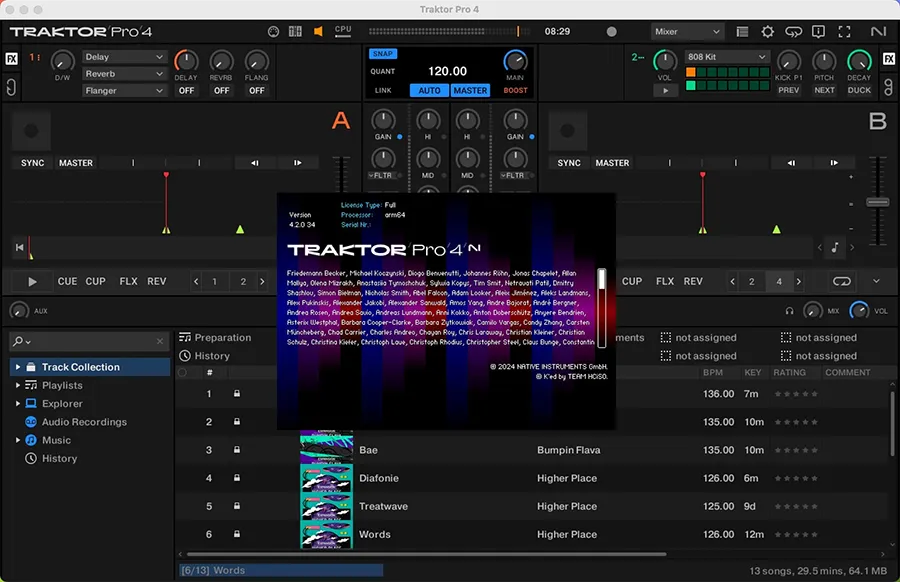 在 Mac 上使用 Traktor Pro,整体界面响应迅速,操作逻辑清晰,尤其在 M 系列芯片机型上性能表现更为出色。其内建音频引擎对延迟的处理极为优秀,即使在复杂效果叠加下也依然维持稳定输出。拖放音轨、自动同步节奏、切换 Loop、添加 Hot Cue 都能实现即点即用。内建的灯光与频谱反馈让混音过程更直观,适合现场即兴演出。搭配 Native Instruments 自家控制器时,几乎无需复杂设置即可实现深度控制。整体使用流畅自然,是一款非常适配 macOS 平台的 DJ 软件。