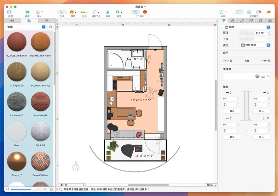 内置 2,400 多个 3D 模型和 2,100 种材质,涵盖家具、装饰、建筑构件等,满足多样化设计需求。 -