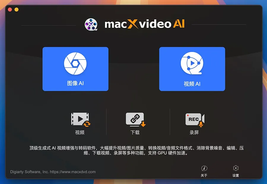 MacXVideo AI 是一款专为 Mac 用户设计的全能视频处理工具,结合了人工智能技术与 GPU 加速,提供从视频增强到格式转换、压缩、录制和编辑等多项功能。国内用户也常称它为“MacX 视频 AI 工具”,简称 MacXVideo。无论是提升视频画质、去除噪点、超分辨率放大,还是批量转码、屏幕录制、字幕添加,它都能高效完成,满足专业创作者、内容制作者以及日常视频处理用户的多样化需求。MacXVideo AI 针对 macOS 平台进行了深度优化,兼容 Retina 显示屏、Apple Silicon 芯片及最新系统,确保操作流畅和高效。