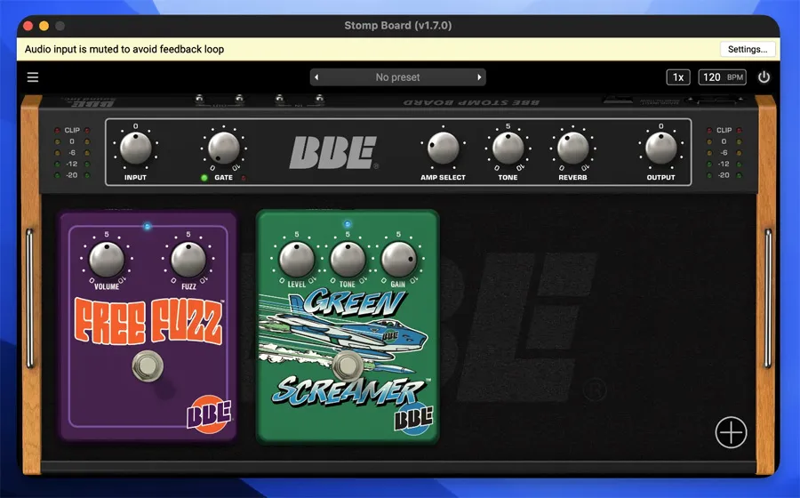 BBE Sound Stomp Board 是一款虚拟吉他踏板效果器插件套装——兼具独立主机应用与 DAW 插件宿主功能,收录 8 种经典“Stomp Ware”踏板音色,并内建 4 种吉他音箱模拟器、门限、全局 EQ 与弹簧混响。