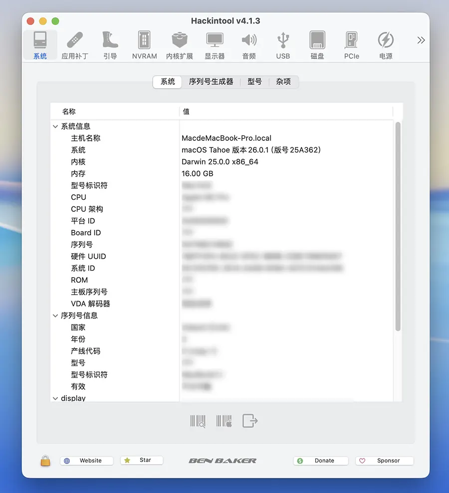 Hackintool for Mac 是一款面向黑苹果(Hackintosh)爱好者与高级 macOS 用户的系统信息与调试工具,专注于查看、分析与调整 macOS 在非官方硬件上的兼容性细节。它集成了硬件检测、驱动管理、USB 映射、显卡调试、NVRAM 参数调整等多项功能,帮助用户快速定位系统问题并生成对应补丁。对于正在配置或维护黑苹果系统的用户而言,Hackintool 提供了一个直观高效的界面,使得复杂的 EFI 调试过程更加可视化与自动化,是构建稳定 macOS 环境的重要工具之一。