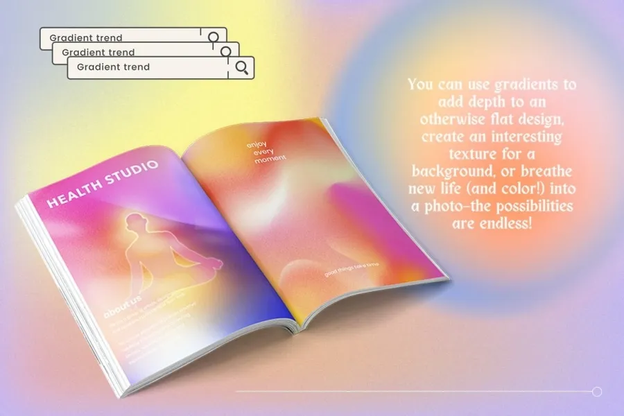 渐变可以为您的徽标增添独特的感觉,帮助您从竞争对手中脱颖而出。感受怀旧潮流,尝试将其应用于您的包装或作为网站背景,可能性无穷无尽!