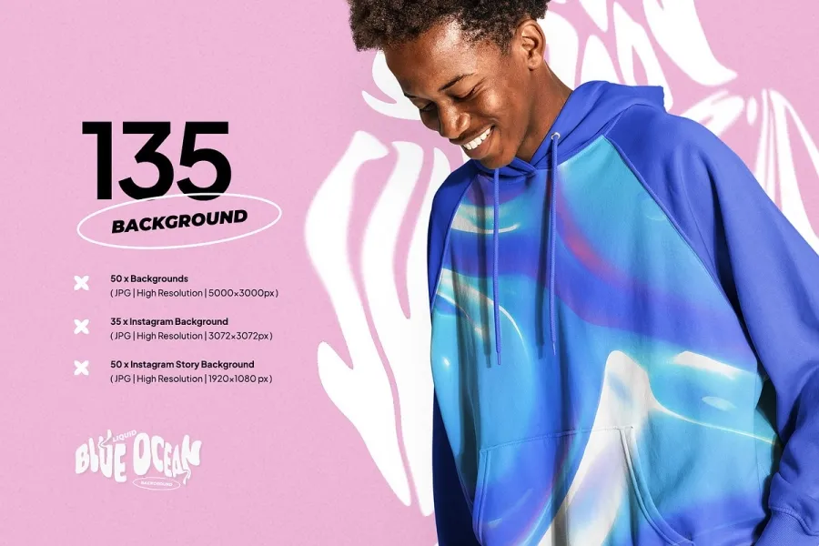 我很高兴向您介绍海洋蓝色背景。它很漂亮,有 135 个背景和 20 个文字图像!