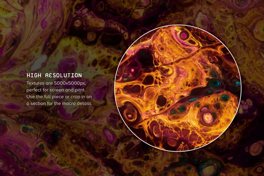 这些作品充满了动感和活力,从充满活力和大胆到微妙和喜怒无常。这些纹理将为各种项目带来独特的感觉,如包装设计、品牌/身份工作、音乐会海报、专辑封面等。使用 Photoshop,您可以通过使用色相/饱和度、色彩平衡或反转等调整层轻松自定义外观和感觉。由于这些资源具有超高分辨率,因此它们非常适合印刷或网络图形。使用完整的作品或裁剪出华丽的微距细节。