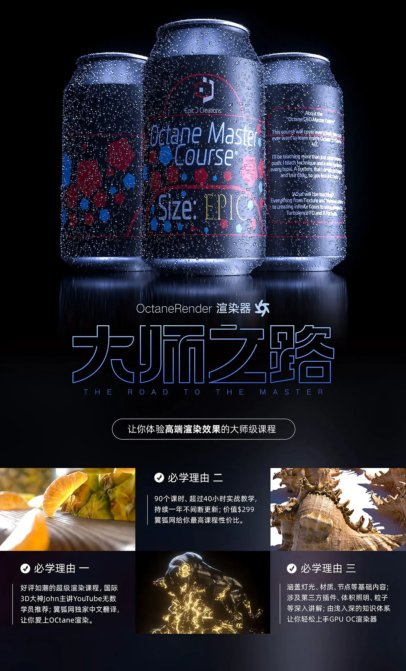 这是一套风靡全网的顶尖OCtane渲染器教学,也是OC在Cinema 4D中的第一个全面的全系列视频教程。适用于各个阶段模型师、影视后期乃至平面设计师,涵盖了您想要了解的关于Octane以及它如何与Cinema 4D交互的所有内容;3D图形艺术家John Burdock主讲,一经发布立立即获得广大同行与模型学员推荐。