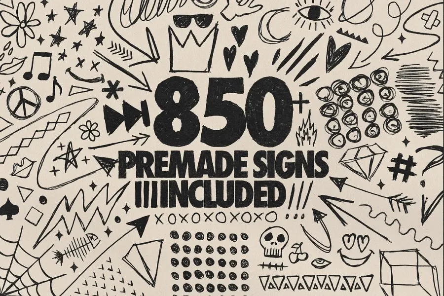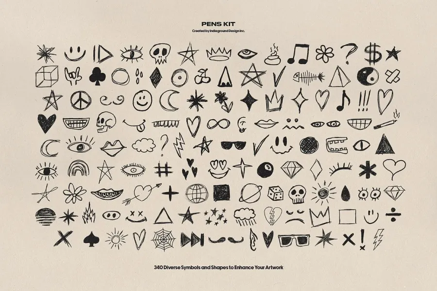 这款超棒的 Pens Kit 包含 850 多种透明 PNG,以及 5 种 Photoshop 画笔,非常适合涂鸦和创作您自己独特的涂鸦。只需将 PNG 放在画布上或选择 5 种画笔中的一种即可开始在图像、图片或艺术品上绘画 – 使用套装中包含的 10 种额外纹理之一作为背景,几秒钟即可开始!