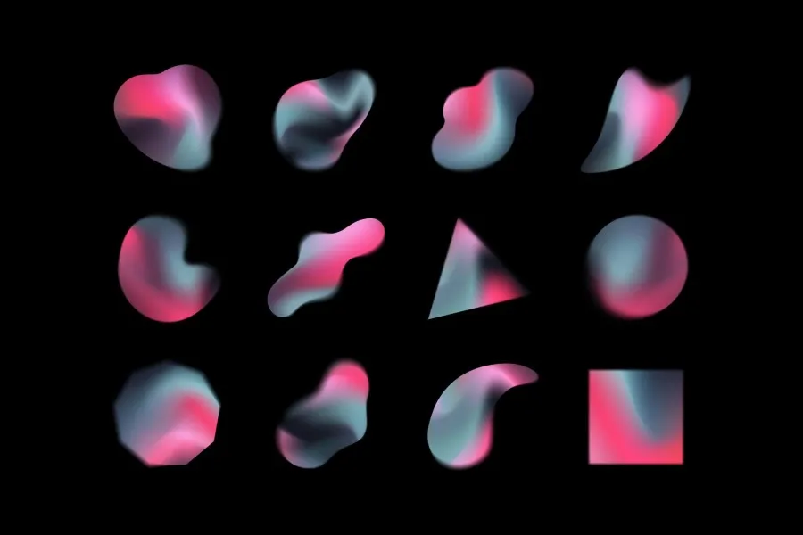 - 12 种 PNG 格式的渐变形状,有 6 种配色方案可供选择(4000×4000 像素,300 dpi);