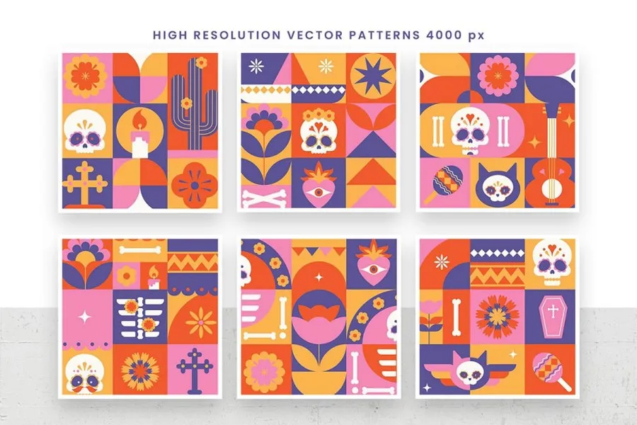 通过我们的亡灵节图案集来拥抱墨西哥文化。这些充满活力的亡灵节主题图案采用 Illustrator Ai、矢量 EPS、剪贴画 PNG 和矢量 SVG 格式,非常适合派对、活动或平面设计项目。这些矢量插图和图标可无缝重复,非常适合艺术家、活动组织者或任何庆祝这个标志性墨西哥节日的人。