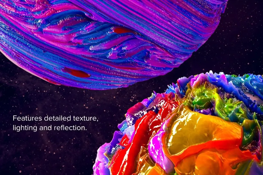 这些抽象的 3D 形状一定会在您进行的任何项目中引起注意。Planetary 是 Jim LePage 和 Mark Walczak 合作的作品。在 8 个月的时间里,Jim 画了大量的抽象画,然后 Mark 将这些画作创作成令人难以置信的独特抽象形状。 由于这些资源具有超高分辨率,因此它们非常适合印刷或网页图形,并且会给任何项目带来独特的感觉。使用完整形状或裁剪宏观细节。这些形状非常生动且色彩鲜艳,但您也可以使用 Photoshop 中的通道轻松创建一些令人难以置信的黑白变化。附有教程视频。