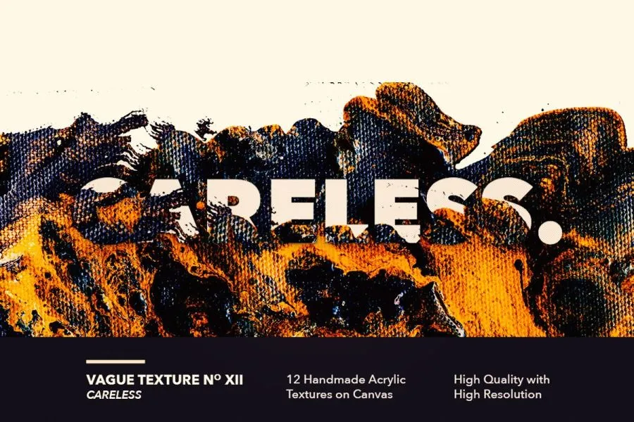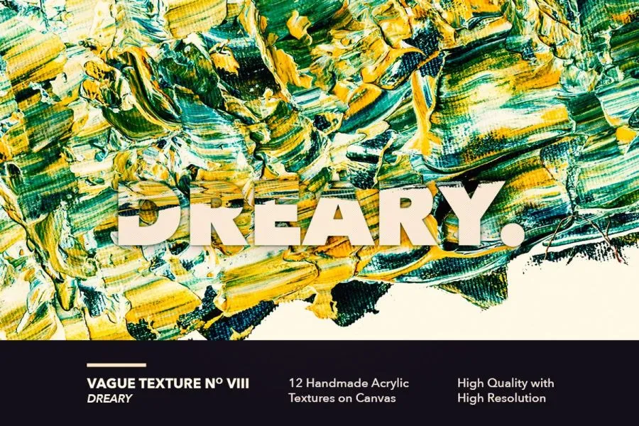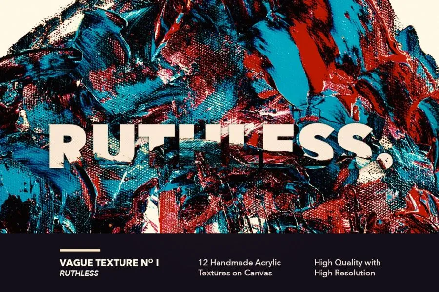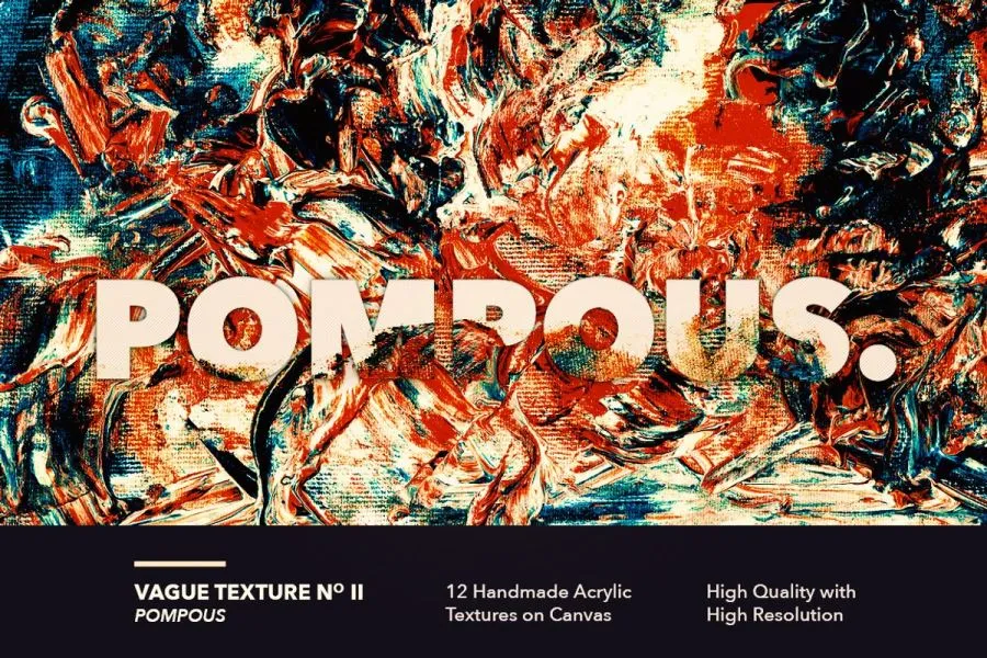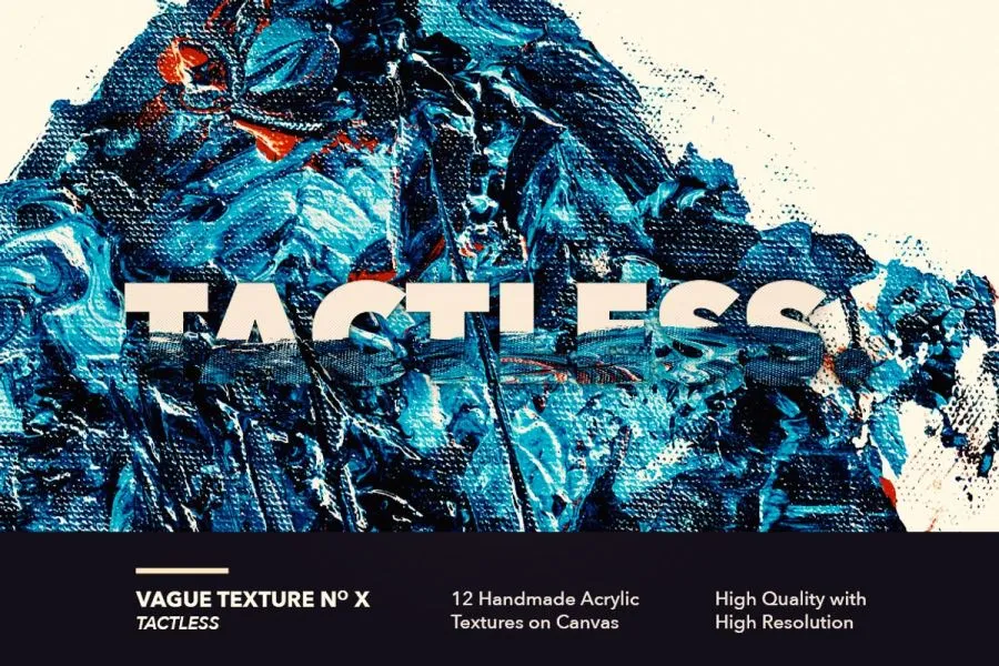 12 种手工制作的亚克力纹理第一卷,纯画布丙烯颜料创作。高分辨率扫描,并使用Photoshop数字化,使其色彩更大胆、更具戏剧性。适用于各种艺术项目,也可与各种字体设计作品结合使用。
