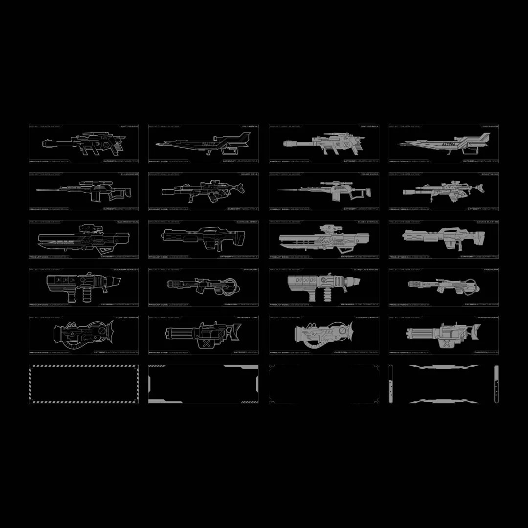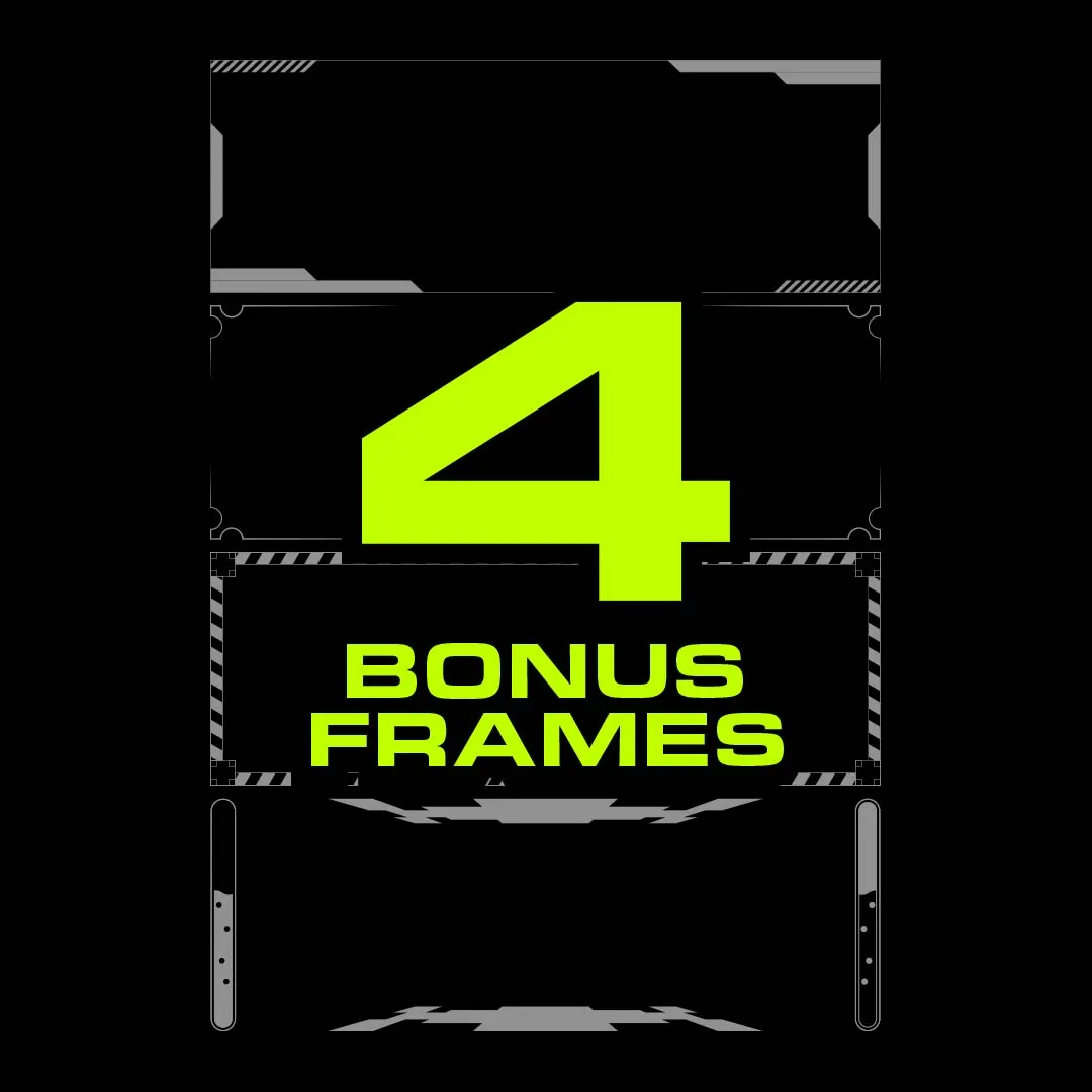 - 额外相框,提升创意:使用套装内含的四个额外矢量相框,进一步提升您的设计。您可以使用它们来框住武器,或将其用于其他用途,例如设计工业风专辑封面。