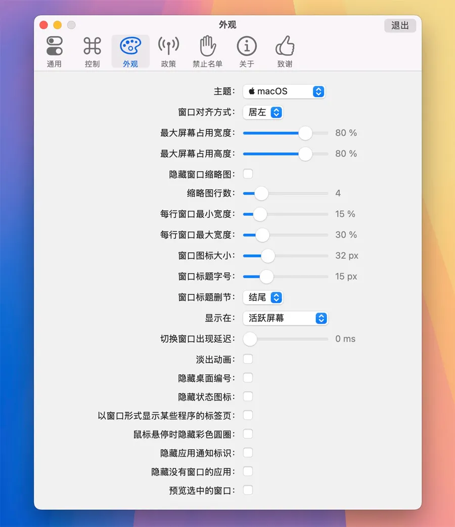 自定义快捷键:支持修改窗口切换快捷键,兼容 Command、Control、Option 等组合。